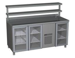 - Конструкция. У классической модели один ряд полок с распашными дверцами. Под столешницей располагается компрессор. Дополнительно устанавливаются гастроемкости, выдвижные ящики, бортики и т.п.
